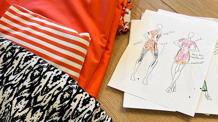I have this thing for fabric stores—they're like a wonderland of textures, colors, and endless possibilities! Every bolt of fabric feels like it holds a world of potential—whether it's a fancy taffeta gown, a sharp suit, or a playful skirt. For pickleball, I aimed to create outfits with contemporary shapes, keeping trims to a minimum so the colors could stand out. I wanted the fabric to have the right amount of stretch for comfort and fit.